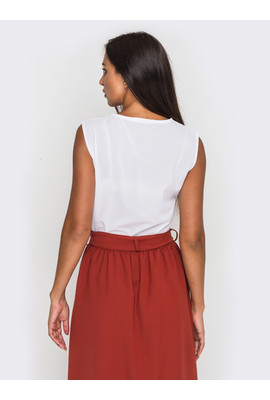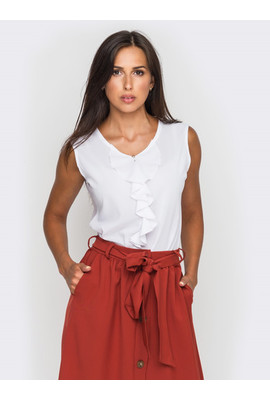 Креп-шифоновая блузка без рукавов. Полочка украшена вертикальными рюшами. Длина изделия - 56 см.